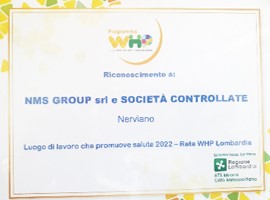 Anche nel 2022, a conferma dell’attività svolta, ci è stato rilasciato l’attestato di azienda WHP quale “Luogo di lavoro che promuove salute”. Un riconoscimento che valorizza le scelte di attenzione da parte di NMS group alla salute delle proprie persone.
